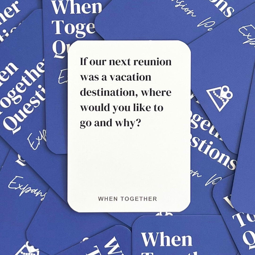 Whether it's your first officlal visit and you're unsure of what to do. Or you're seeking to build new memories and explore aspects of your relationship that are best addressed face-to-face, then When Together Questions is for you.